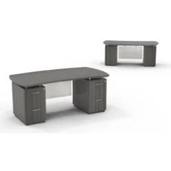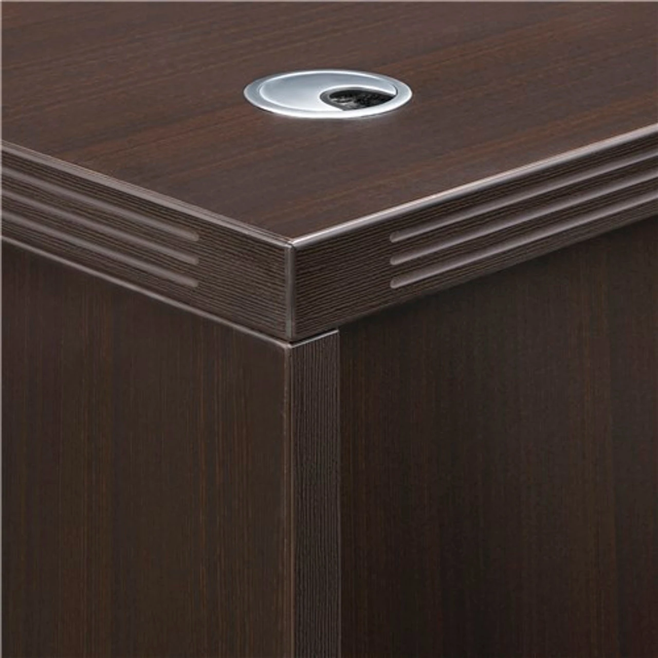 - Main laminate conference desk is 72″ x 36″ and has dual cable pass through grommets