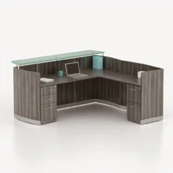 The Mayline Aberdeen series is our most popular laminate reception desk line. The Mayline Aberdeen desk exhibits a refined PVC ‘fluted’ edge design in a 1.625″ thick top, A 14 1/2″ recessed modesty panel at center. Also comes with two standard grommets and the modesty panel. Your Aberdeen desk will arrive by truck with the optional pedestals fully assembled, if added under the dropdown menu. The remaining components of the laminate reception desk (shell) does require some assembly with the industry standard and easy to use ‘cam-locks’. All that is required is a simple screwdriver. The Mayline Aberdeen desk Ships Free in a little as 2-3 business days. Strong factory warranty included.