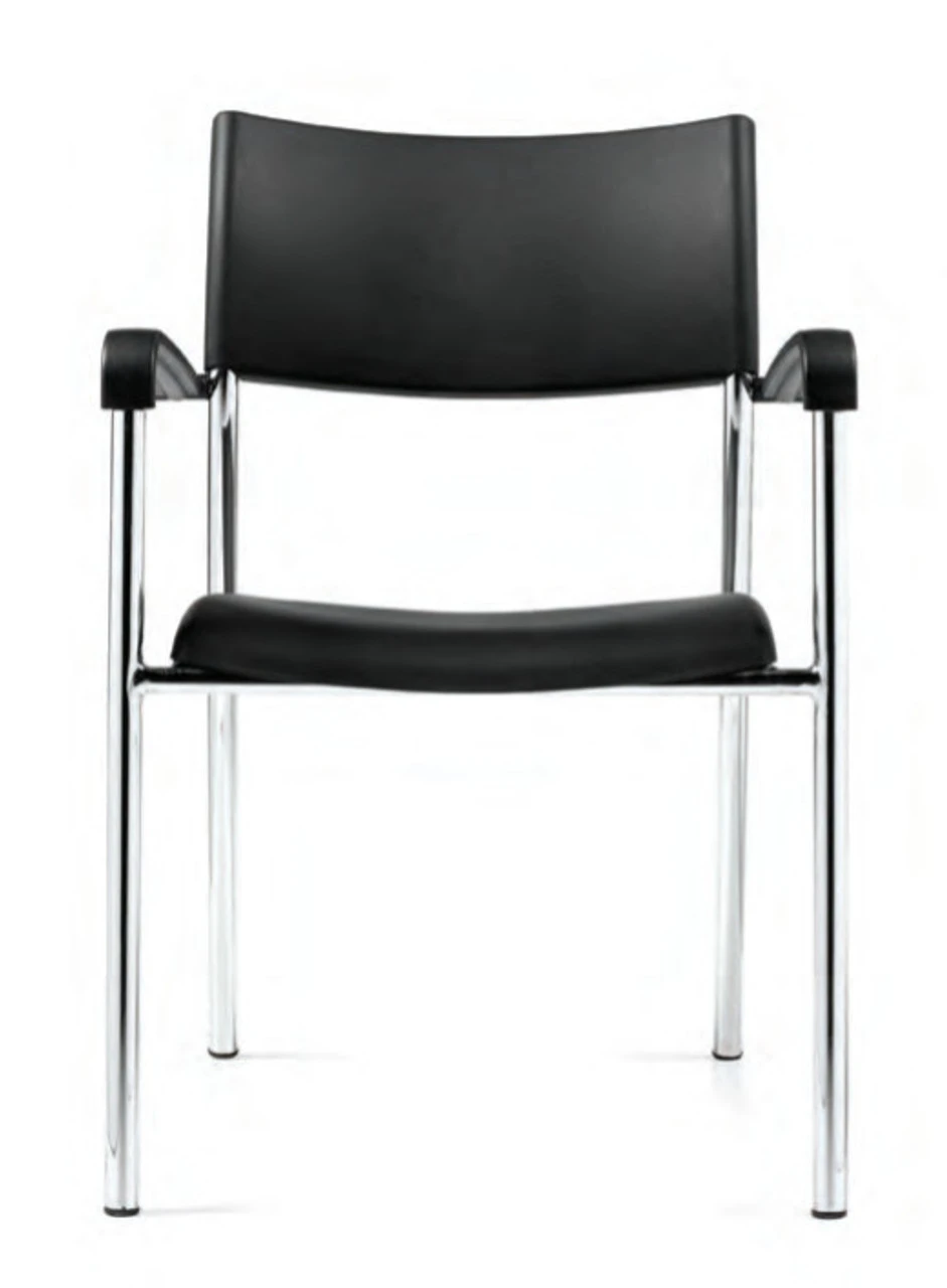 Original looking stacker with a chrome frame and black plastic seat and back. Stacks 5 high on the floor with or without arms. Backed up by the strong OTG by Global 5 Year Factory Warranty.