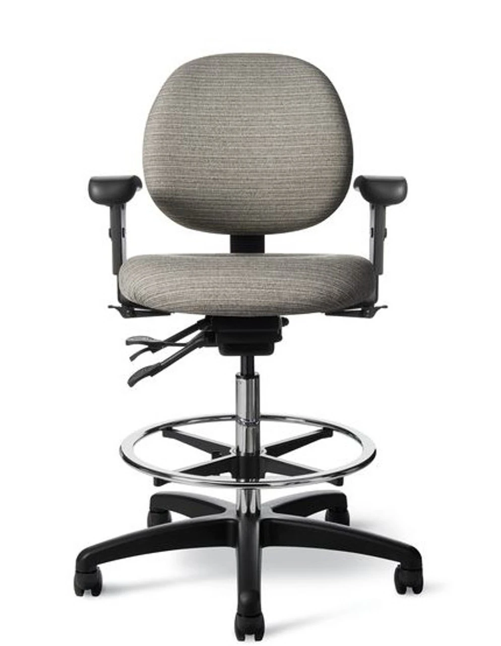 This commercial grade, high quality, Healthcare Stool has Grade 3 healthcare vinyl which is easy to clean. Select a Stage vinyl with a polyester backing (slightly textured like a fabric but sheds liquids) or a Cinema antimicrobial polyurethane. Complete with a pneumatic lift and EZ back height adjustment. Optional 8″ cylinder. Fabricated in the USA.