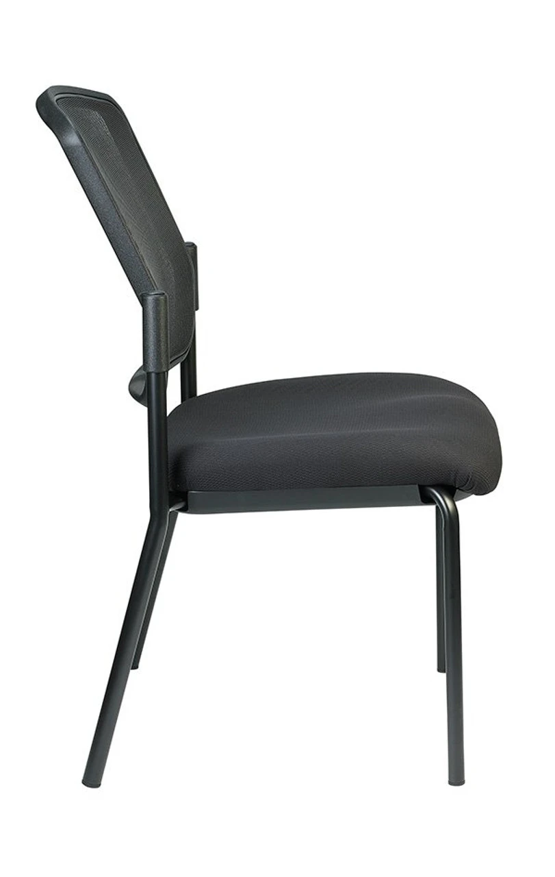 The Dakota2 Mesh Back Stacking Guest Chair is a great chair that can be used in break rooms, waiting areas, exam rooms or just about anywhere. A breathable mesh back allows guests to your workplace to feel cool and relaxed. Sturdy legs and a steel frame provide a stable framework for long-term use. This chair can also stack four chairs high on the floor. The chair comes in a Dove Black fabric 5806 seat and a black mesh PM01 back. The frame, arms and legs also come in a black finish. This chair also gives you the option to add fixed arms.Â