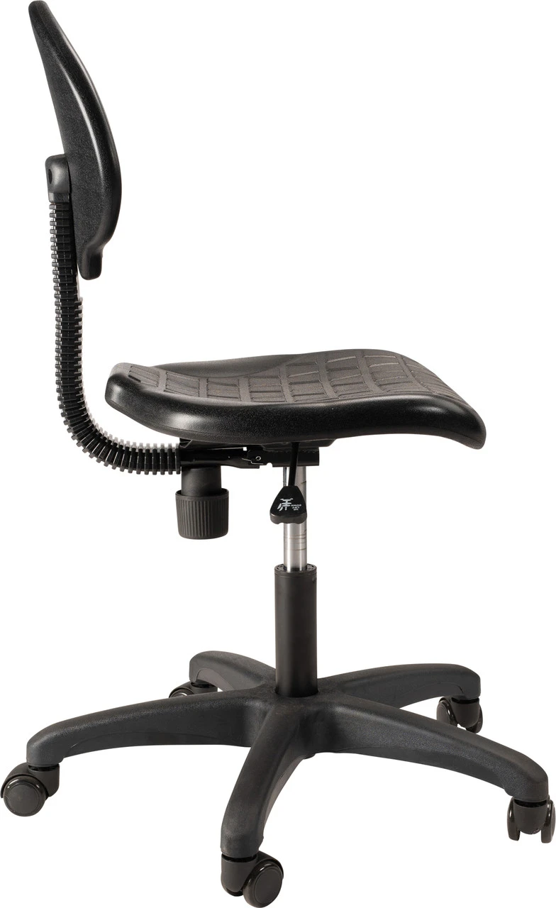 - Polyurethane lab chair that is resistant to chemicals and punctures and cleans easily