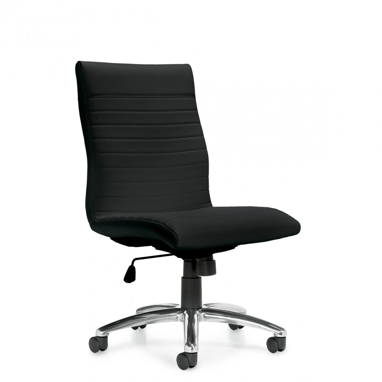 This OTG managers chair is a tried and true performer. This chair is upholstered in your choice of fabric or Luxhide leather which is a hybrid leather material that yields a very smooth hand and great surface consistency. Easy to clean and it breathes! This chair carries the OTG by Global factory warranty (click on the tab below).