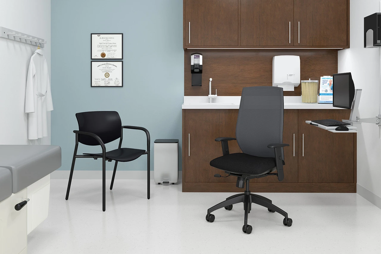 This @NCE Mesh Simple Synchro Tasker has more features than most chairs in its class: height and width adjustable arms, seat slider and ratchet back, and a weight capacity of 300 lbs. They can be cleaned with a 10:1 bleach solution. Need a fabric sample to touch and feel? Contact us.