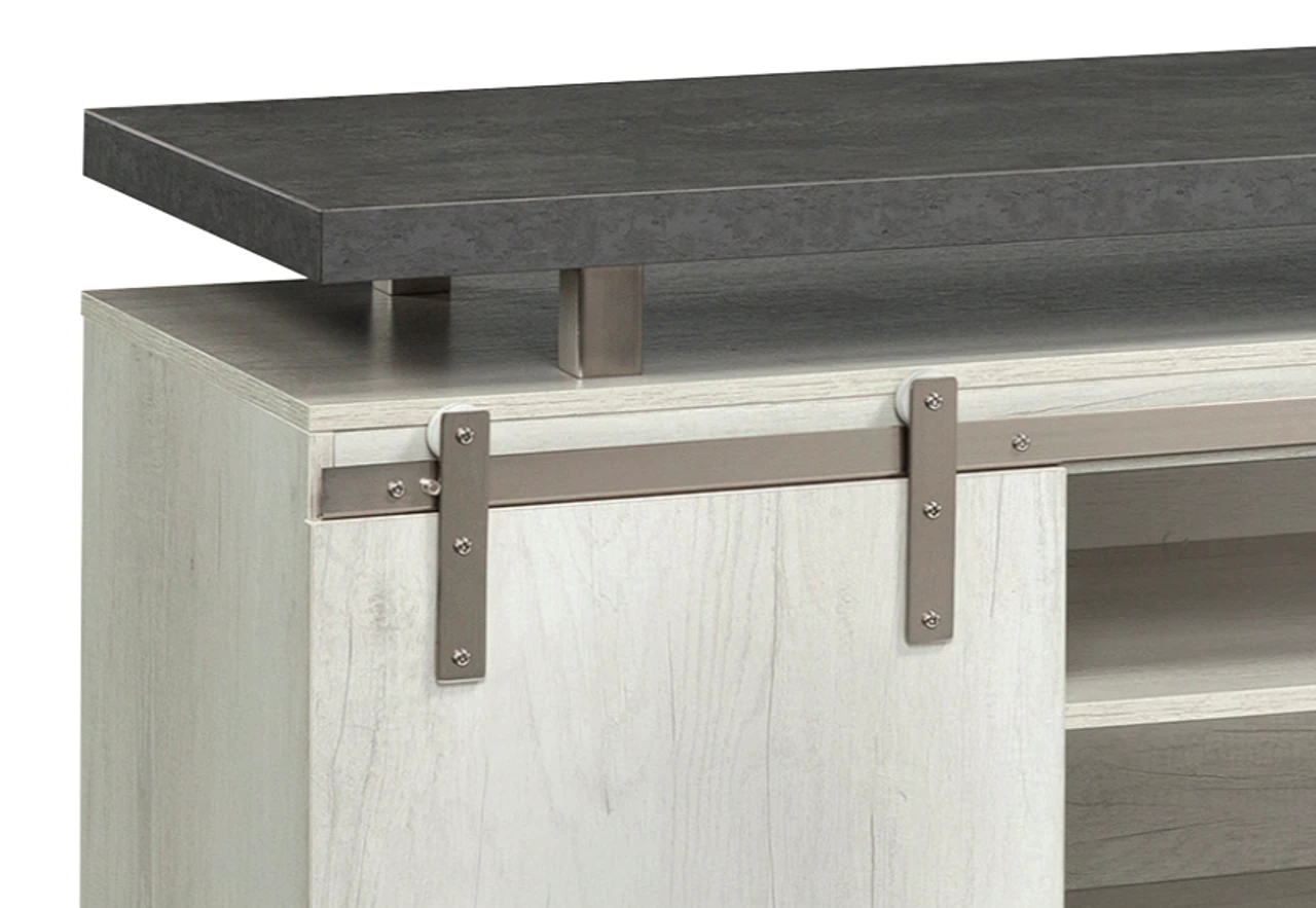 - White Ash (see image below) laminate pairs with Silver hardware and Frosted Glass