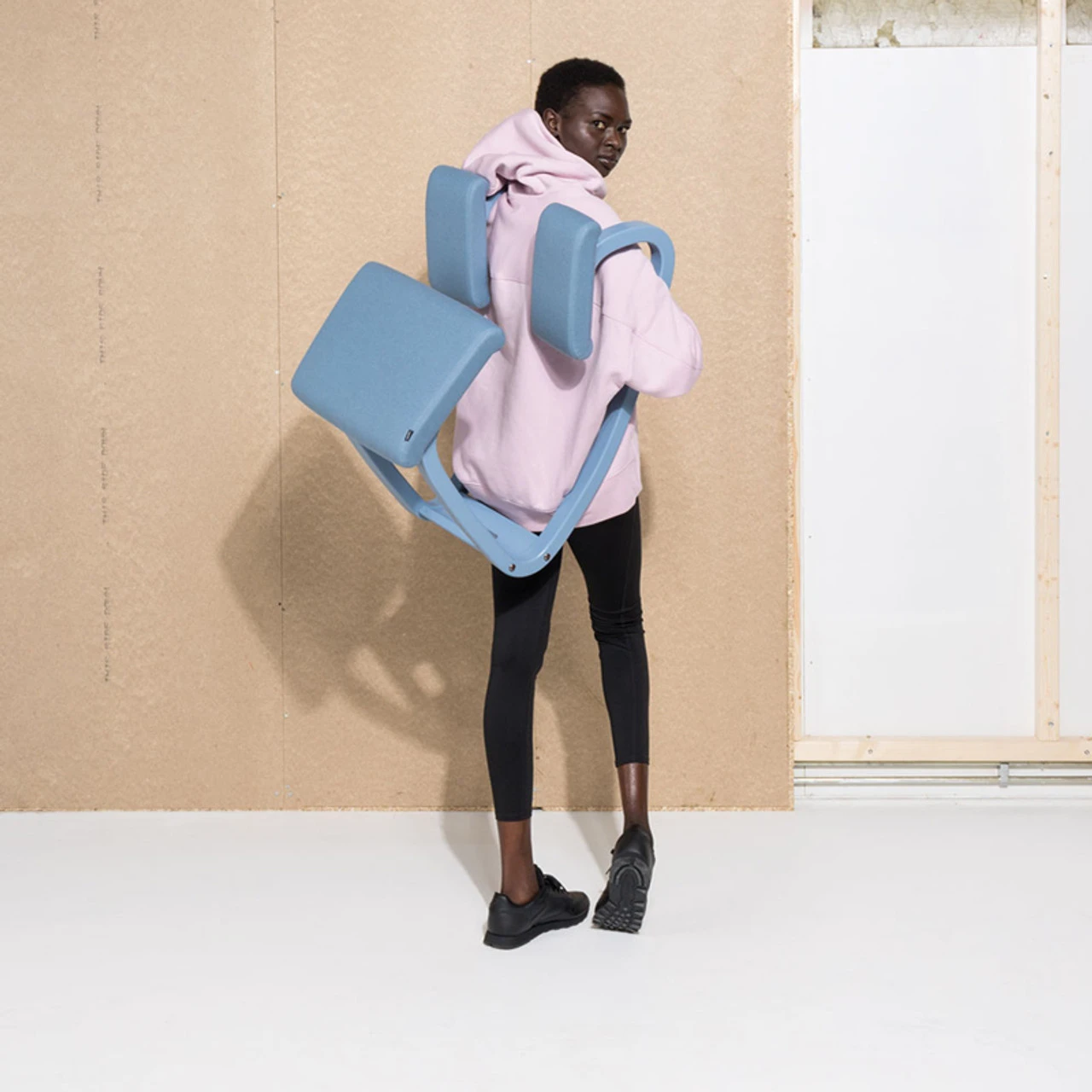 A NEW Variable™ Balans® Monochrome series with five fresh new colors is now available to celebrate 40 years of beautiful design, with an engraved signature from Peter Opsvik. Designed by Peter Opsvik in 1979, the Variable balans is the original kneeling chair. A Varier classic, the Variable Balans kneeling chair gently tilts the pelvis forward and encourages a natural, dynamic and upright spine. The muscles in your abdomen and back will engage to keep the spine upright and your body balanced, which further strengthens core muscles and prevents back and shoulder tension. The angle between the upper and lower body increases, which greatly improves your circulation. As the body moves from an active to a relaxed posture, the flexible runners respond with a gentle rocking pendular motion. After you’ve sat on it for a few days, you may not want to go back to your old way of sitting.