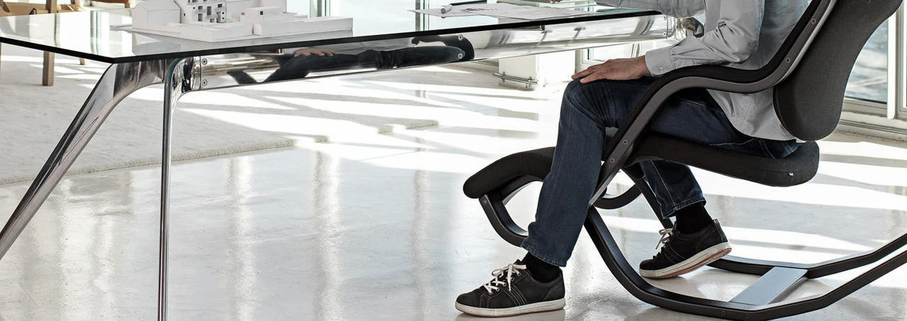 Encourages a neutral spine. When upright, the chair tilts the pelvis forward, encouraging an upright, neutral spine, which activates and strengthens abdominal and back muscles.